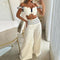 Summer Fashion Off Shoulder Petal Sling Short Top Loose Pant Two Piece Set CODE: READY1180