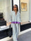 Autumn Casual Print Color Block Silk Satin Shirt Wide Leg Straight Pant Set CODE: KAR1910