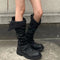 New Arrivals Rivet Tassel Knee High Round Toe Square Heel Boots CODE: KAR4078